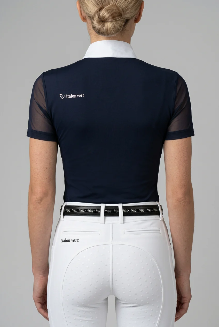 Dezenter Glamour bei Marscherleichterung: Wenn an heißen Tagen ohne Jacket geritten werden darf, wird dieses Shirt zum absoluten Hingucker. Die in das luftige Mesh eingearbeiteten Glitzer-Details funkeln edel im Sonnenlicht. So bewahrst du dir einen hoch-ästhetischen, professionellen Look, der bei den Richtern und Zuschauern gleichermaßen Eindruck hinterlässt.