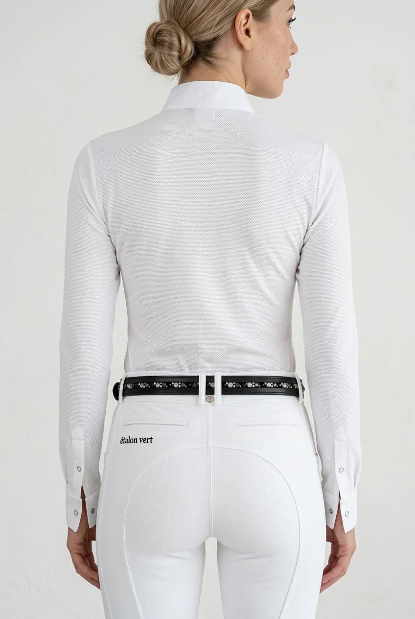 Setze im Turnier auf ein atmungsaktives Turniershirt für Reiterinnen, das Performance und Eleganz vereint. Das Kannan Turniershirt Kurzarm unterstützt dich bei jedem Start – funktional, sportlich und professionell.